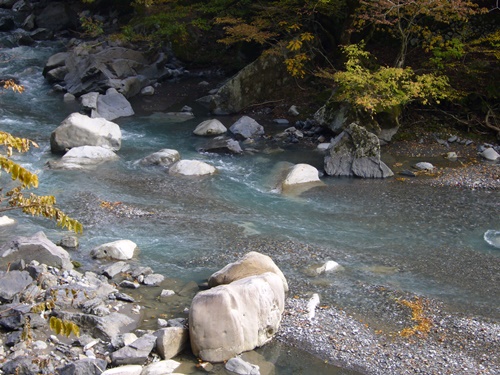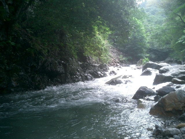 03 November 愛知川の上流 今日は愛知川上流で釣りをするお話しをします。 今からお話しする釣り場所は愛知川の本流です。 政所を超えて広瀬屋さんが右手にあります。 国道と平行に流れている川ですので車を運転しながら川を眺めて釣り人が竿を出しているのが見えます。 もっぱら春先の渓流魚の解禁日から5月のゴールデンウイークくらいまでと7月の鮎の解禁日から9月末の禁漁日までですが、車窓から眺めることができます。 本流の渓流魚は最近ではニジマスが主流になってきています。 昔はイワナも沢山の放流していましたが、最近では上流に比べてイワナの放流は少なくなっています。 釣り場所も好みで皆さん楽しんでいますが私はもっぱら松原キャンプ場付近で竿を出しています。 ちょうど愛知川の分岐点になる地点で釣りができます。 須谷川、神崎川、茨川、茶屋川が交わって愛知川になっている合流地点です。 夏には沢山の人が川遊びに訪れる場所でもあります。 そんな場所で春先は渓流魚を釣って楽しんでいます。 3年ほど前の話ですが私が上流から降りてきてキャンプ場近くで釣りをしている人の魚を見せてもらったらニジマスとイワナもいましたが、アイスボックスに満タンになっているのをみました。 本流での放流は沢山しているのでした。 釣りのことですから誰でもアイスボックスにいっぱい釣れるはずがありません。 そこのポイントを熟知している人だから沢山釣れたのだと思います。 須谷川から愛知川に交わる地点に大きな岩があります。 その岩に水が当たって水深は深くなっています。 良いポイントです。 それと岩の前にも橋げたの下になりますが岩があります。 そこのポイントも魚が集まって良く釣れる場所です。 渓流釣りは場所にもよりますが、釣りをする時間は短く感じますが、その割には体力を使い果たします。 錯覚するのでしょうね。 早朝の5時前から竿を出して昼まで釣っていたとしたら7時間は釣ってる計算ですね。 釣りの時間が短いと言っているのはあくまでも私の私見ですのでご理解お願いします。(笑) 総長は賑わっていた本流も昼近くになると釣り人もまばらになっていますから寂しくなります。 好みもありますが色んな場所で自分に合う釣り場が必ずあると思いますから場数を踏んで探してください。 比較的行きやすい本流では初めて釣りに来たと言って竿を出している人も多くいます。 そんな中で長く渓流釣りをしている人がいるのは沢山の魚を釣って満足したいからですね。