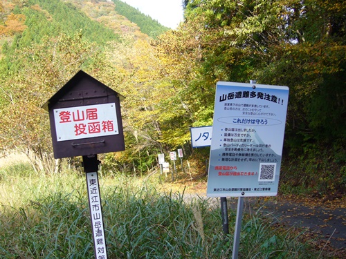 04 November 禁漁期間中の御池川 紅葉が始まりかけた奥永源寺の御池川に行ってきました。 御池川はいつも釣りに行く川ですので道は慣れていますが、先日の台風22号の影響で道はかなり荒れていました。 君ヶ畑の外れにあるノエビア化粧品の研修所前には車が辛うじて通れるくらいのスペースを開けてバリケードが立ててありました。 川の様子を見ながら車を走らせて目的地の長瀬橋まで走りました。 途中何か所か車を止めて川を眺めたり谷の入り口を見たりしていました。 河川の入り口には分りやすい看板が何か所も立ててありますから初めて来た人は分かりやすくてよいです。 そうこうしながら長瀬橋に着きました。 橋の手前には新しく案内の看板が立てられていました。 今年の春の解禁日には立てられていたかわからないけど、長瀬橋も渓流釣り解禁日には人気のあるポイントになってるから立てたのだと思います。 橋の上から川を見て観察してると解禁日から変わっている様子はなかったですが、川の水が増水していて少し濁ってました。 川の下りていつものポイントを観察していましたが、何にも変化なしでした。 今回もありましたが、岩の手前に水が溜まりになっていて沢山のイワナの稚魚が列を組んでいたことを思い出しました。 今回も期待しているましたが、残念ながら見ることはできなかったです。 川を少し歩いて観察していましたが、何にも変化はなく水の音がごうごうと聞こえるだけでした。 長瀬橋を後にして小又谷へ行きました。 小又谷の手前に御池岳の登山道入り口がありますが、登山者の車が沢山止まっていました。 御池岳は人気がある山ですから一年中登山する人がいます。 小又谷の入り口は相変わらずチエーンが掛けられていて分りやすい看板もたてられています。 谷には入りませんでしたが、来シーズンの解禁日になれば又釣りに行きます。 帰りに愛知川の本流の国道沿いにある広瀬屋に寄って地酒を買って帰りました。