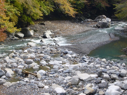 05 November 解禁までの下見 久しぶりに愛知川上流に行ってきました。 やっぱり空気が旨いのが嬉しいですね。 そんな思いで渓流に行かれる人も多いでしょうね。 今の季節は禁漁期間ですので釣りはできませんが、なぜか河川の入り口に何台か車が止めてあるのを目にしました。 私も途中で車から降りて川を見てましたが、誰一人川にはいません。 この季節は魚が散乱してから孵化して稚魚が育っている季節でもありますので、魚を脅かさないでそっとしておいてやりたいですね。 渓流を眺めていると事前と心が癒されてきます。 解禁中では釣ることに専念してますから、そのような気持ちにはなりませんが、シーズンオフは色々と想いがあるから渓流を見て心がなごむのでしょうね。 釣りをしなくても現地に出向いて様子を見るのもよいと思います。 シーズン中の川の様子や川で体験したことがおさらい出来るから来シーズンの楽しみを作ることが出来ます。 ここ何年か前に永源寺上流でクマが捕獲されましたが、それ以降鈴鹿にもクマが出るのが定番になってしまいました。 今回も上流に行きましたが、クマに出会うことはなかってよかったです。 普段はリュックサックにクマよけの鈴を付けてますが、最近ではクマよけの鈴はクマが人間がいるとわかるから付けてない人もいるそうです。 私も昨年からリュックサックのポケットに爆竹を入れてます。 まだ一度も鳴らしたことがありません。 昨年犬上川の上流に行ったときも使っていないまま今日に至ってます。 爆竹は何年も使わずにおいておくと肝心なときに爆発しなくなるのでしょうか? そんなことも気になりますが、いずれにせよ今はまだ爆竹を使わずに釣りを楽しんでいます。
