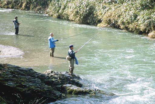 比較的行きやすい本流では初めて釣りに来たと言って竿を出している人も多くいます。